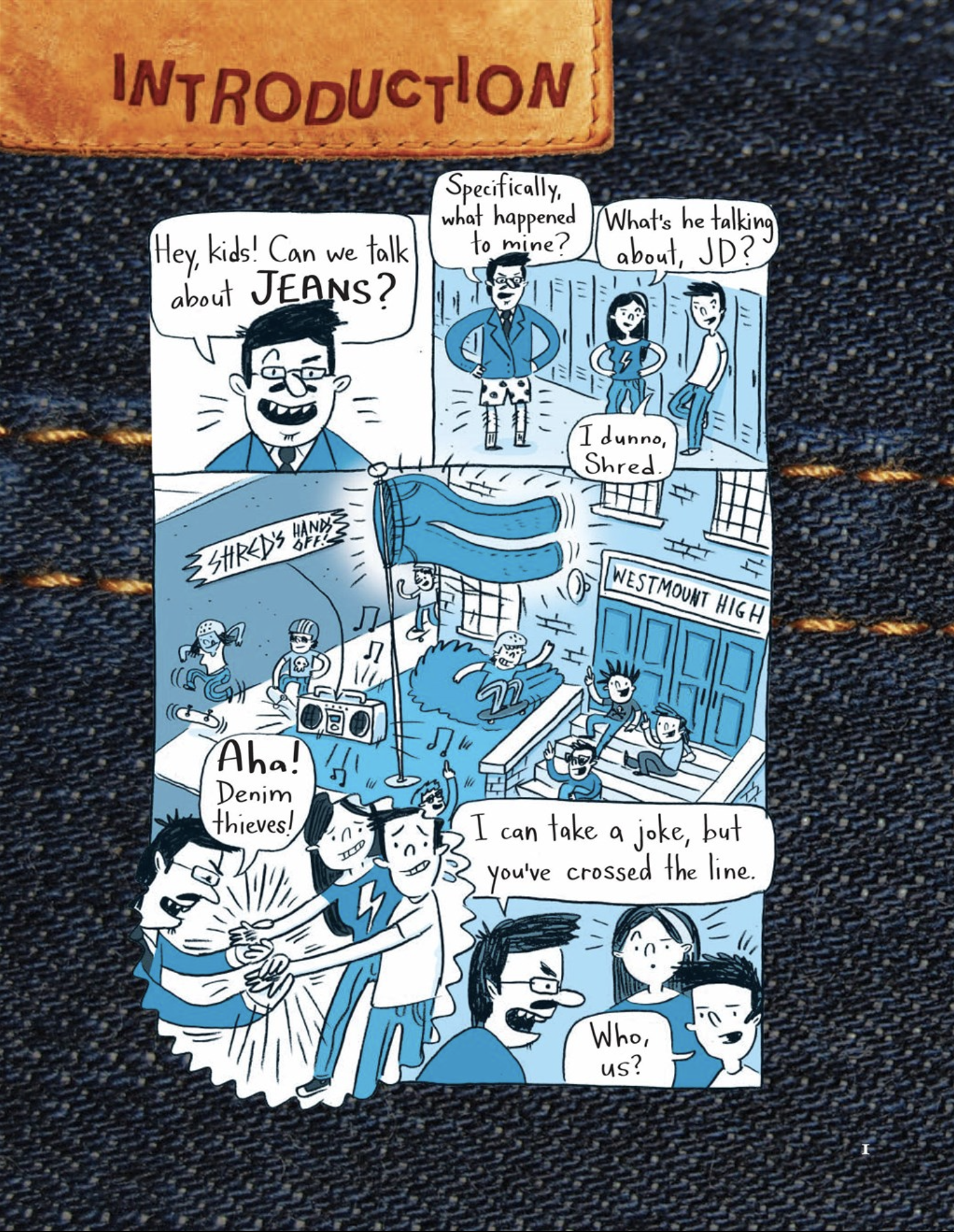 In The Lowdown on Denim, narrators JD and Shred take readers on a trip through the history of jeans, demonstrating that, whatever their style, jeans have always driven and reflected popular culture. They use their interest in denim to escort readers from wartime to the rodeo circuit and from environmental concerns to the rock and roll stage.